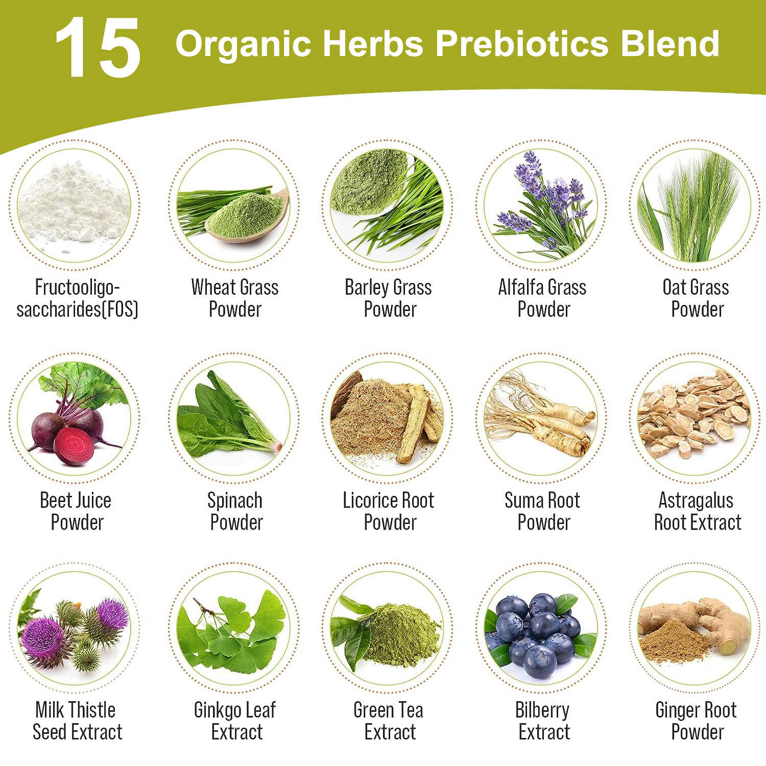 | Main Ingredient | 15 Organic Herbs Prebiotics Blend |